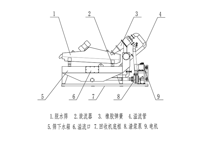 泵將篩下水箱中的砂水混合物輸送至分離系統(tǒng),經(jīng)分離器濃縮的細(xì)砂由分離器出料口提供給脫水篩,與篩上粗砂一起脫水后產(chǎn)出成品砂,實(shí)現(xiàn)細(xì)砂的回收利用。脫水篩脫水過程中,少量細(xì)砂透過篩網(wǎng)再次回到篩下水箱,經(jīng)泵與分離系統(tǒng)重復(fù)抽取,再次回收,最終實(shí)現(xiàn)流失細(xì)砂的有效回收。
